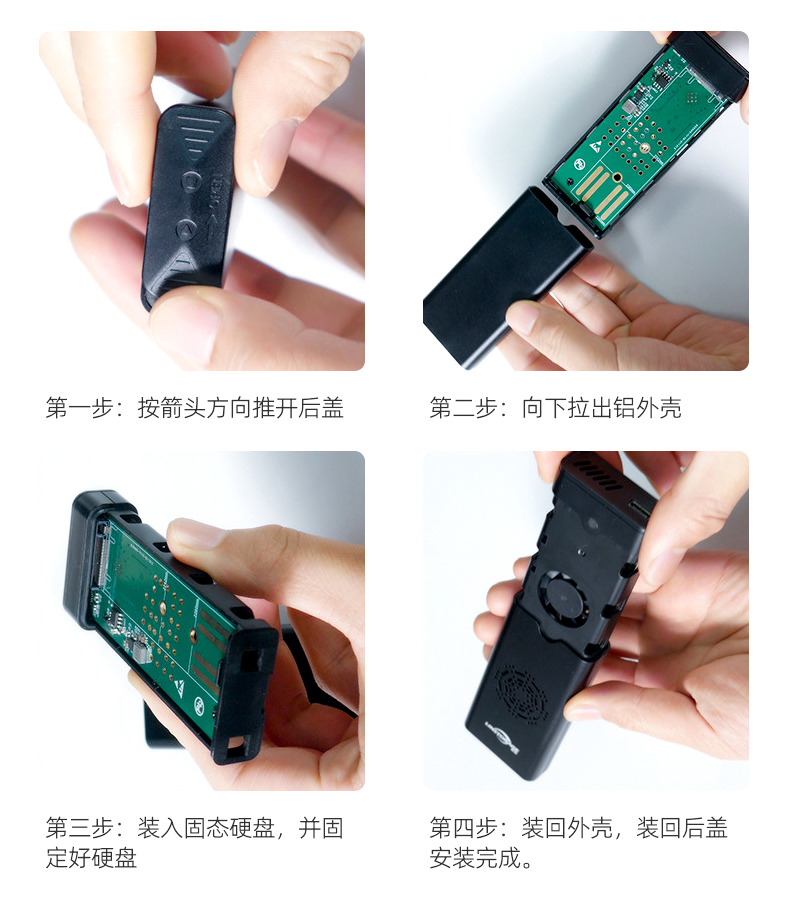 鋁合金外殼+ABS內(nèi)框打造,防震設(shè)計跌落不滑出,保護(hù)硬盤安全內(nèi)部接口:M.2(M Key)