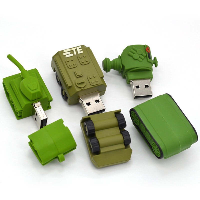 pvc軟膠材質坦克U盤一共有3個款式,有大炮U盤,坦克U盤,裝甲車U盤一共3個款式,現有綠色和草綠色兩個顏色,是用于八一建軍節的紀念禮品。