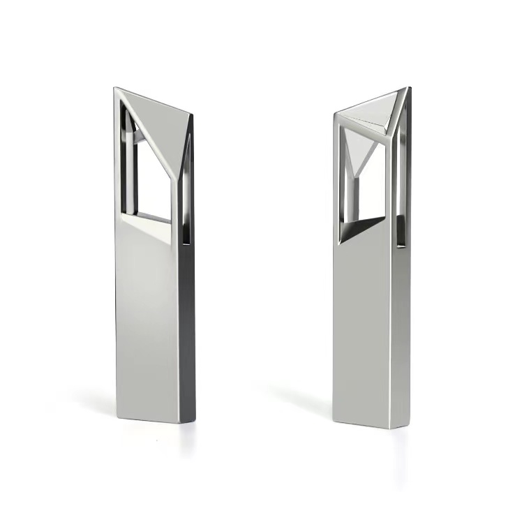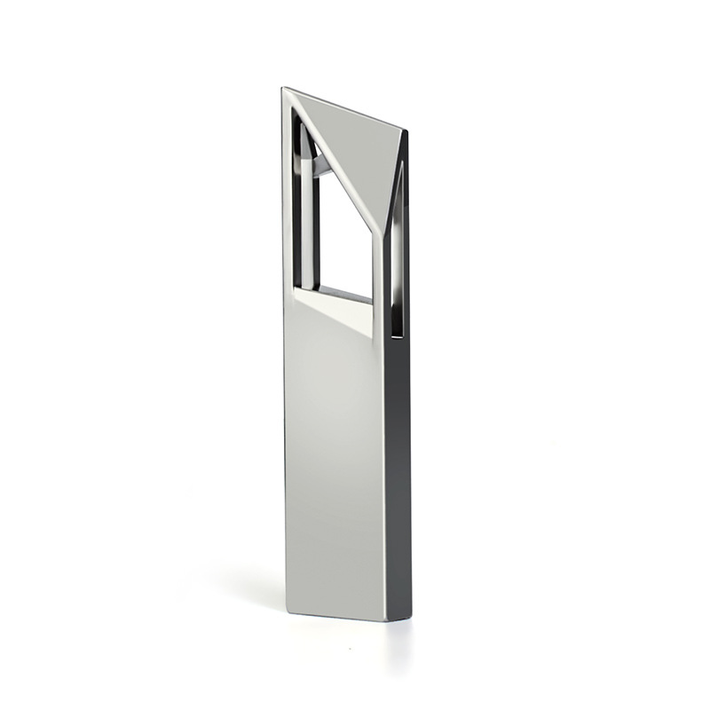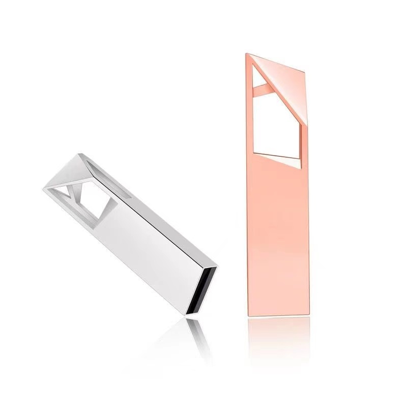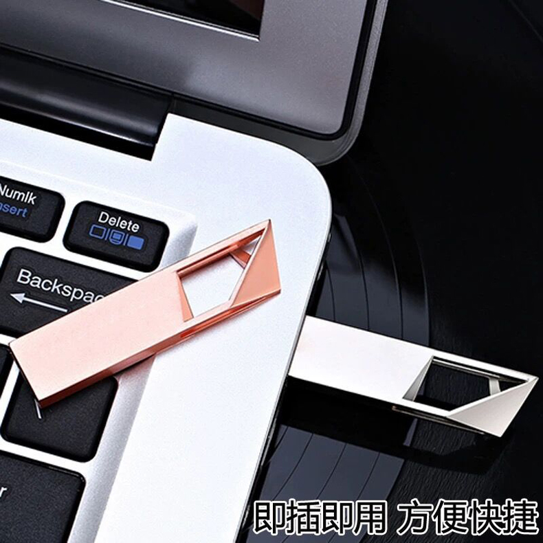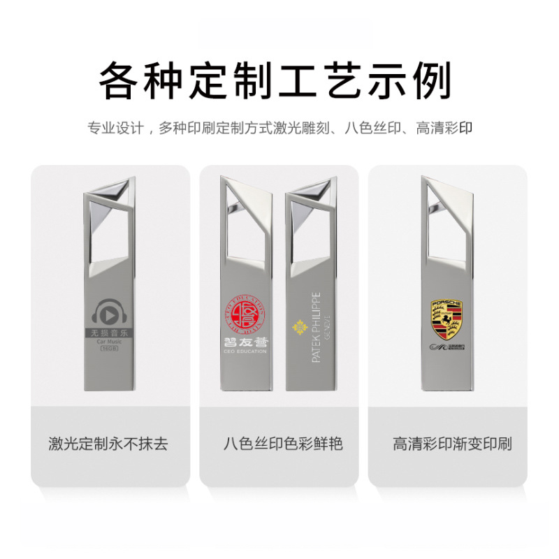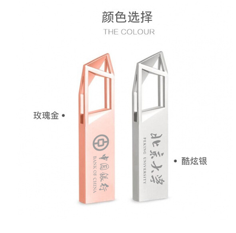 金屬鏤空U盤有兩種款式,一種是直接拔蓋的,這款就是金屬一體型,整體厚度只有2mm,屬于超薄款,頭部是鏤空設計,這款非常質感。